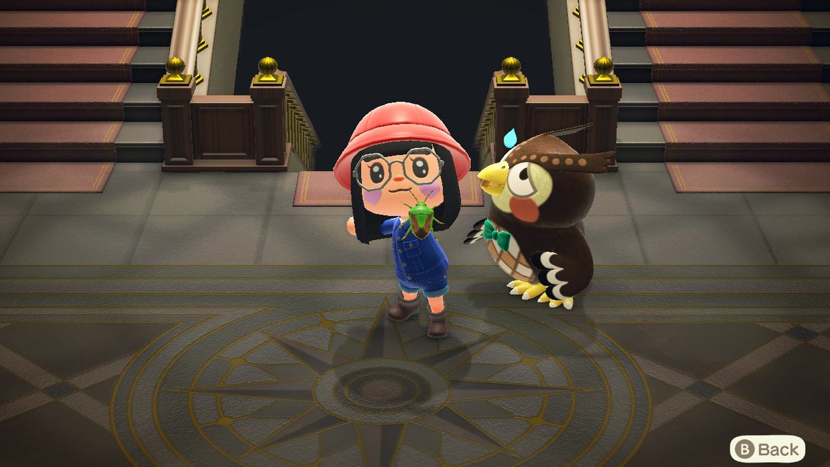 To start, Blathers remains consistent with his hatred of bugs. If you "show off" an aquatic creature in front of Blathers, he will applaud you as other villagers do, but if you "show off" a bug in front of him, he will squirm in distress.
