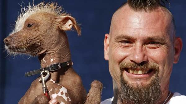 "Icky" a Chinese Crested, is held by owner Jon Adler of Sacramento, Calif., during the World's Ugliest Dog Contest Friday, June 25, 2010, in Petaluma, Calif.