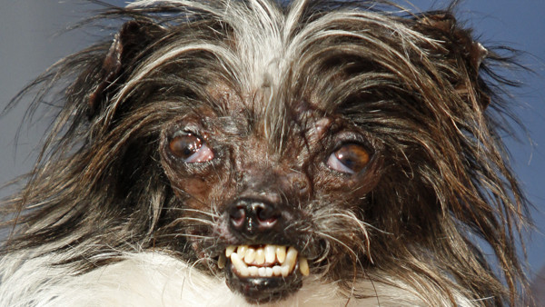 Peanut, a two-year-old mutt is held by Holly Chandler, the owner after winning the World's Ugliest Dog Contest, at the Sonoma-Marin Fair, Friday, June 20, 2014, in Petaluma, Calif. Chandler and Peanut are from North Carolina.